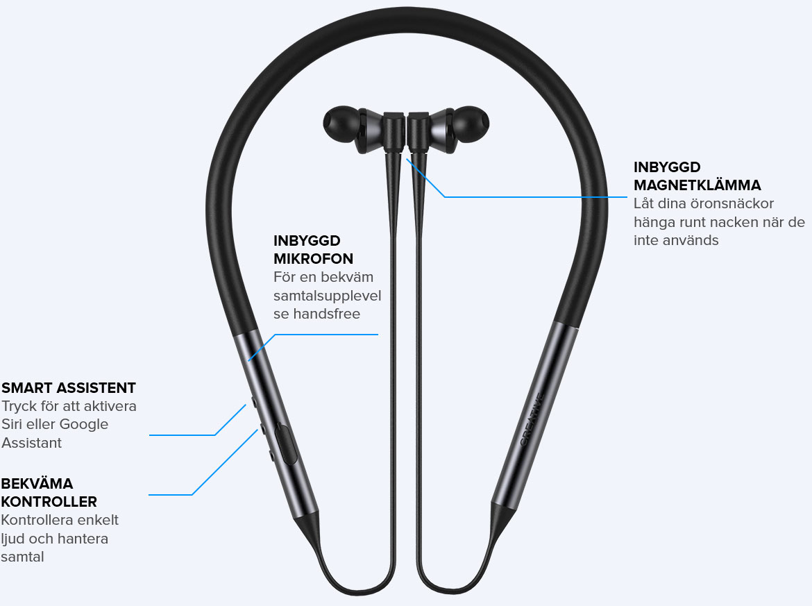 Upplev exceptionell ljudklarhet med den snygga Aurvana Trio Wireless-nackremmen med Super X-Fi READY, med imponerande 20 timmars speltid. Ergonomiskt utformat för bekvämt bärande under lång tid, Aurvana Trio Wireless har en mjukt och lätt nackrem av silikon för att bäras bekvämt runt nacken, som du kan bära hela dagen, från kontoret till din lediga kväll!