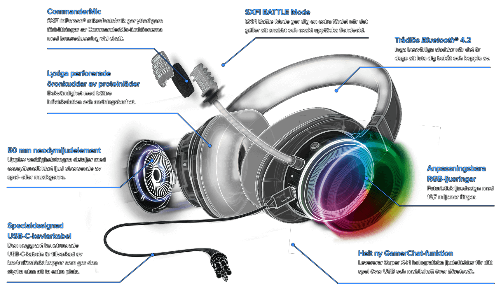 Super X-Fi® USB-C spelheadset med Bluetooth® 4.2 + CommanderMic