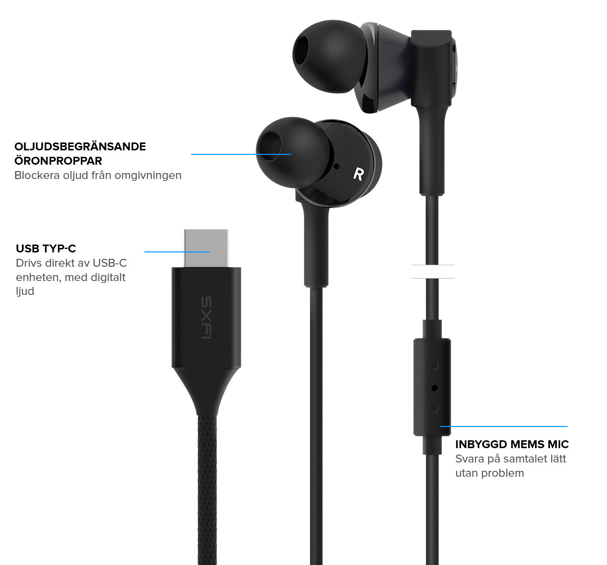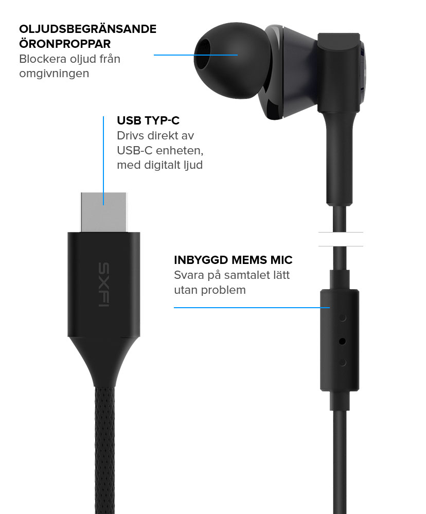 Tre-bandsomvandlare USB-C In-ear hörlurar med super X-Fi technologi. Inbyggda och personliga för dina öron